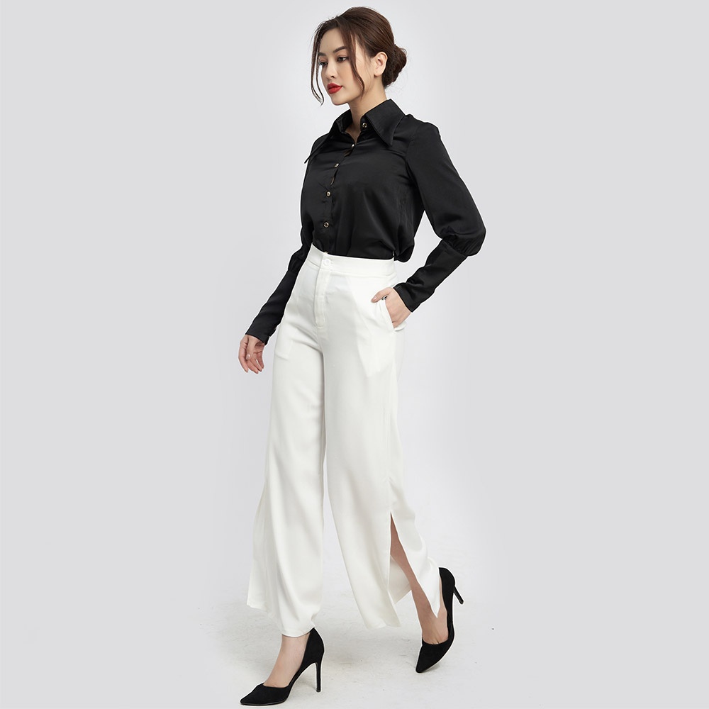 Quần Ống Suông Nữ Cạp Cao Xẻ Tà HECCI Hai Màu B138