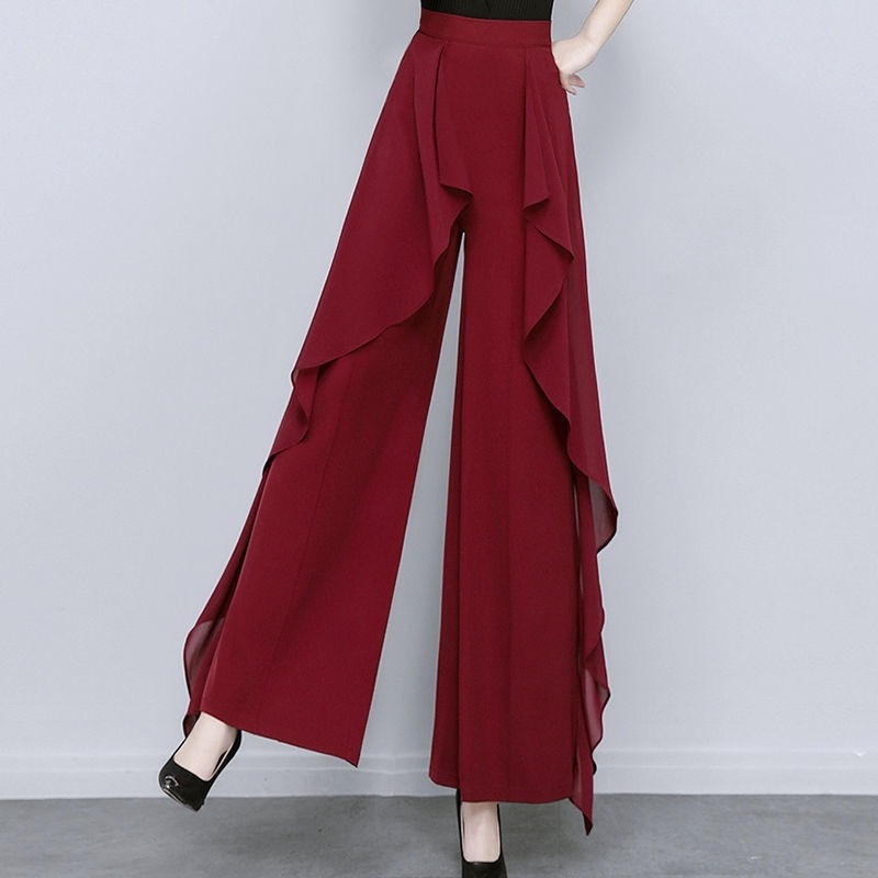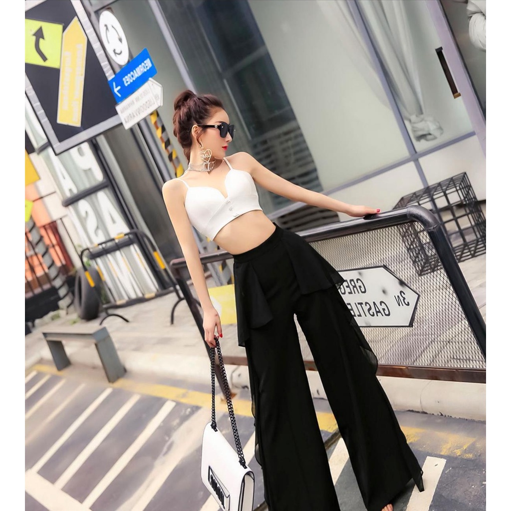 Quần Dài Ống Loe Chất Liệu Chiffon Màu Đen Thời Trang Quyến Rũ Cho Nữ