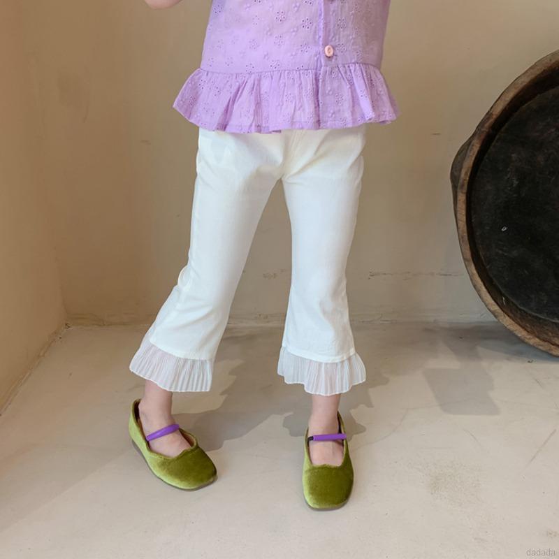 Quần dài ống loe viền ren eo co giãn cho bé gái 3-8 tuổI
