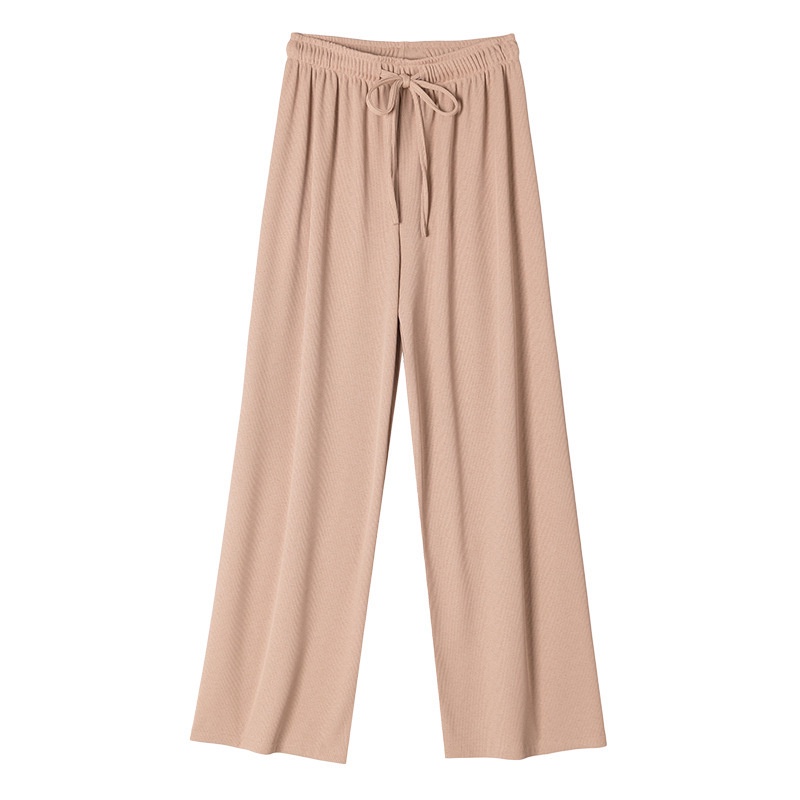 Quần ống rộng nỉ nhung tăm kiểu quần dài ống suông cạp chun lưng cao có dây rút chỉnh eo