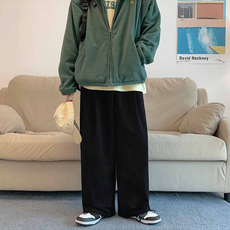 Quần Dài Ống Rộng Màu Trơn Phong Cách Retro Nhật Bản Cho Nam