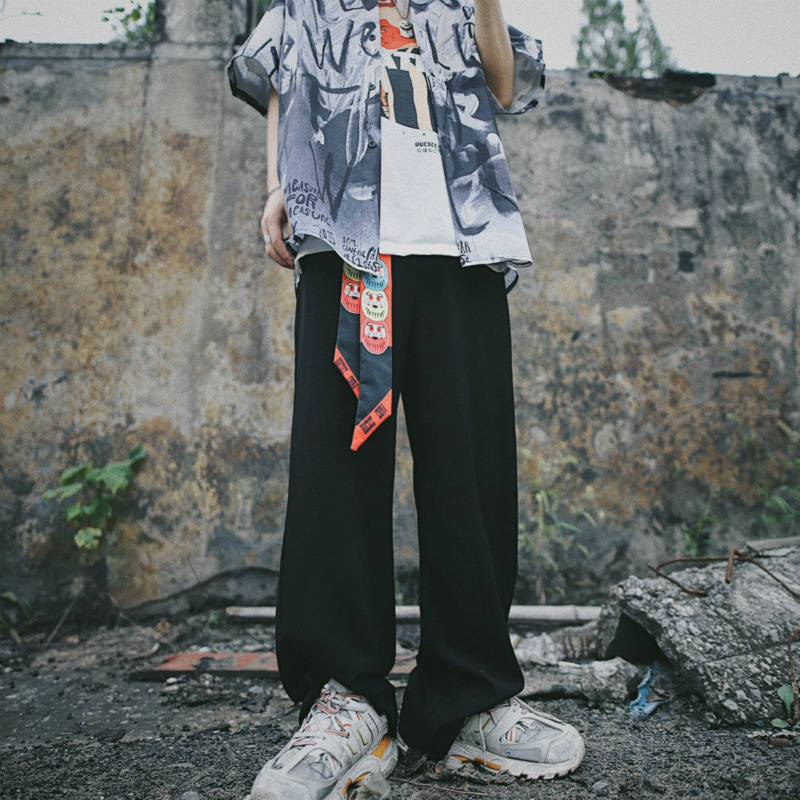 Quần dài INCERUN ống rộng suông thẳng màu trơn thời trang phong cách Hàn Quốc cho nam