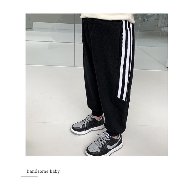 Quần dài dáng thể thao cho bé trai, bé gái kẻ sọc 3 vạch mềm mại, giữ ấm tốt