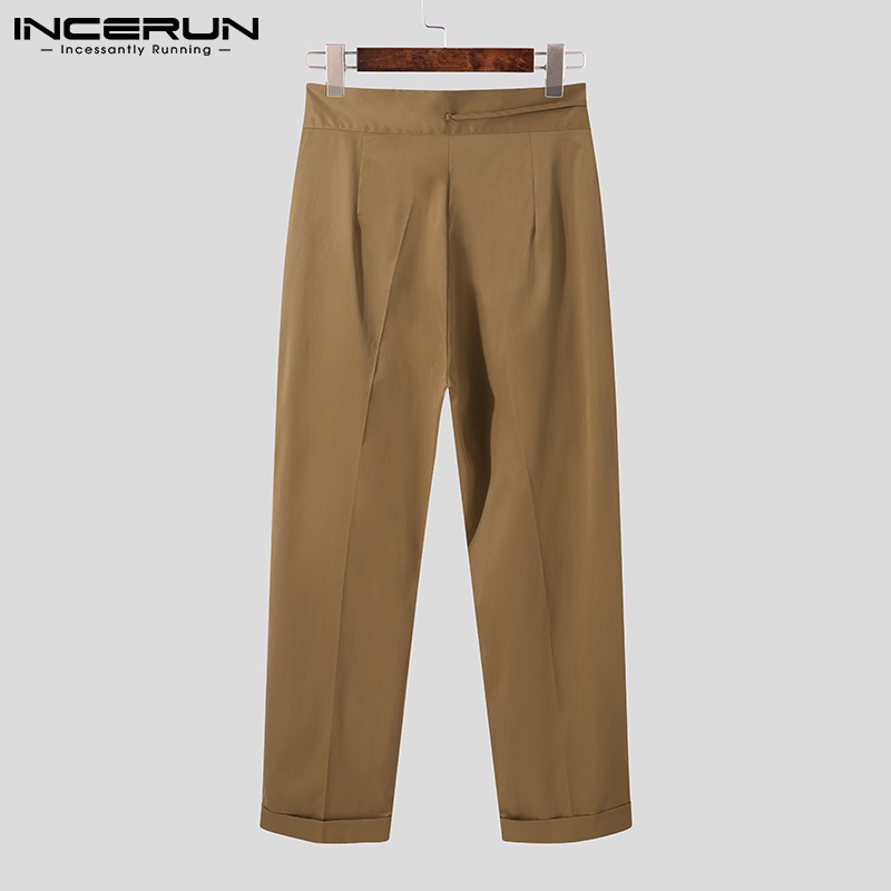 Quần dài INCERUN ống rộng suông thẳng màu trơn thời trang phong cách Hàn Quốc cho nam
