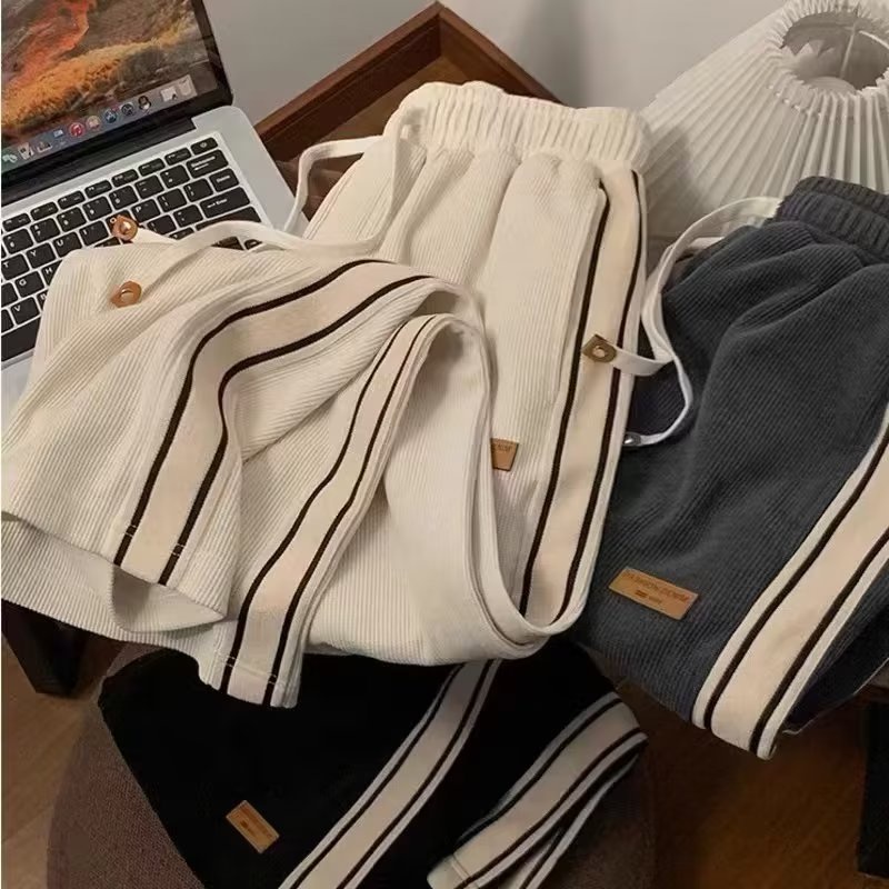 Quần Dài Thể Thao Vải Nhung Kẻ Sọc Kiểu retro Đường Phố Thời Trang Xuân Thu Cho Nam