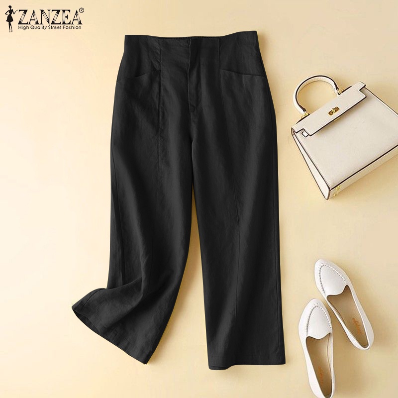 Quần dài ZANZEA lưng thun co giãn ống rộng có túi thời trang Hàn Quốc dành cho nữ