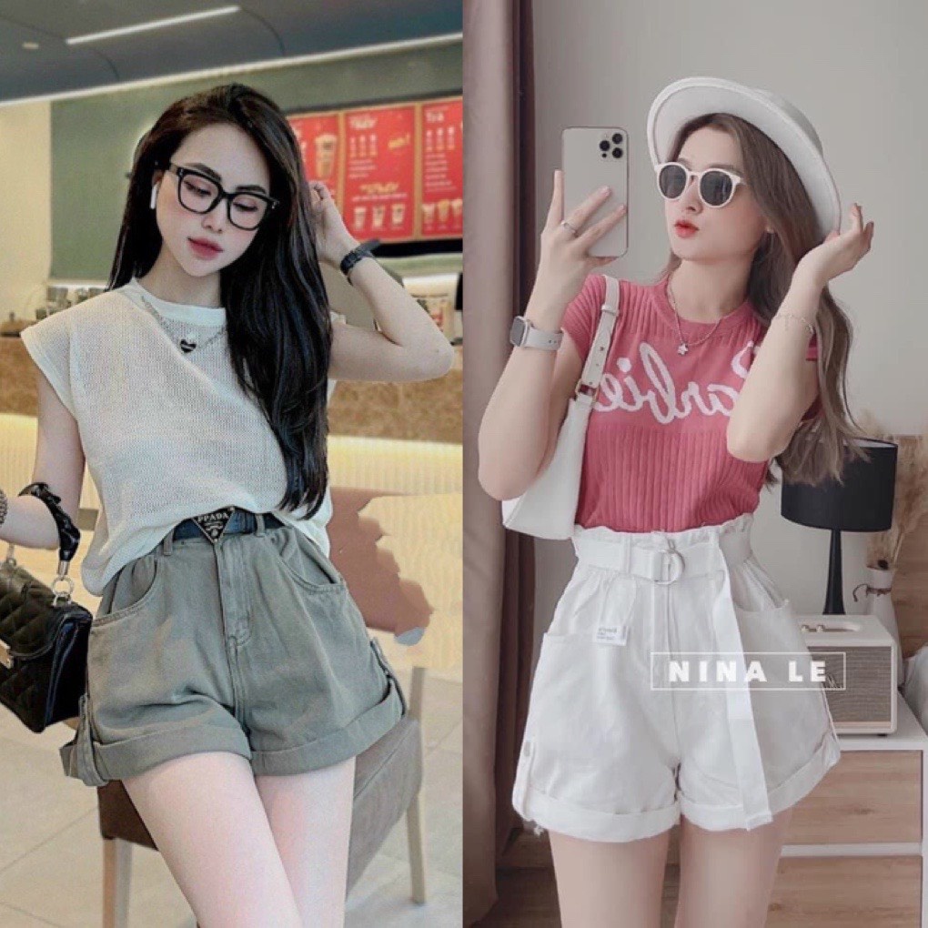 Quần short cạp cao chun sau 2 khuy C102 , quần đùi nữ ống rộng lưng cao gập gấu trẻ trung cho nữ