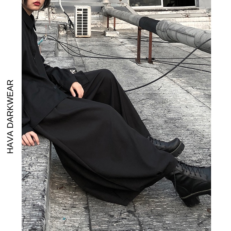 Quần giả váy màu đen HAVADW ống rộng dáng dài chất kaki thô Q51