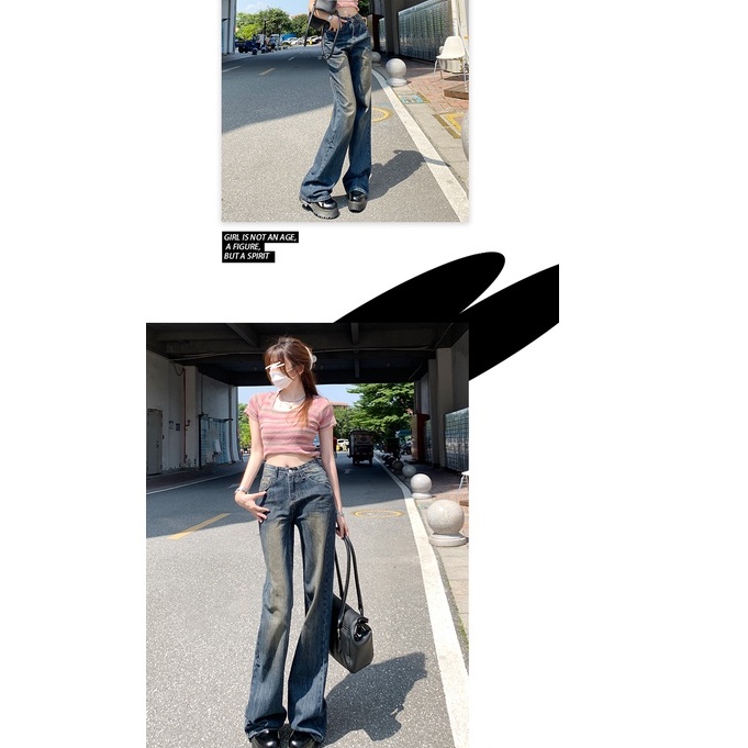 Quần Jean Ống Loe Lưng Cao Màu Trơn Thời Trang Hàn Quốc 2023