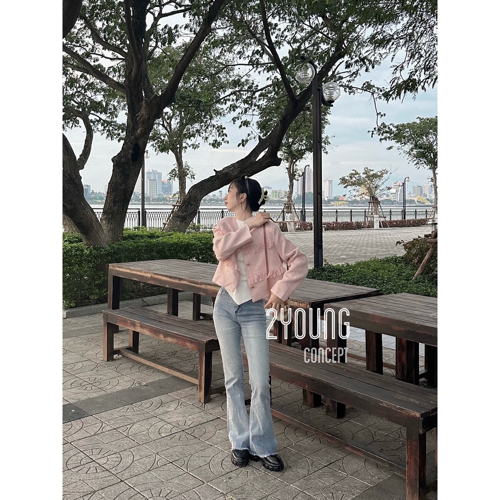 Quần Jeans Ống Loe Tua Gấu, Quần Jeans Lưng Cao Thiết Kế Trẻ Trung Năng Động