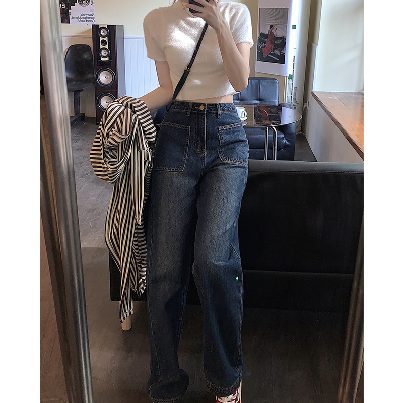 Jiashucheng Quần Jean Nữ Ống Rộng Lưng Cao Phong Cách Đường Phố Mỹ Thời Trang Mùa Hè Hàng Mới