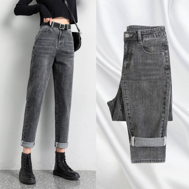 Quần Jean Dài Dáng Ôm Lưng Cao Ống Loe Màu Xám Khói Phong Cách retro Mỹ Thời Trang Xuân Thu Cho Nữ V912