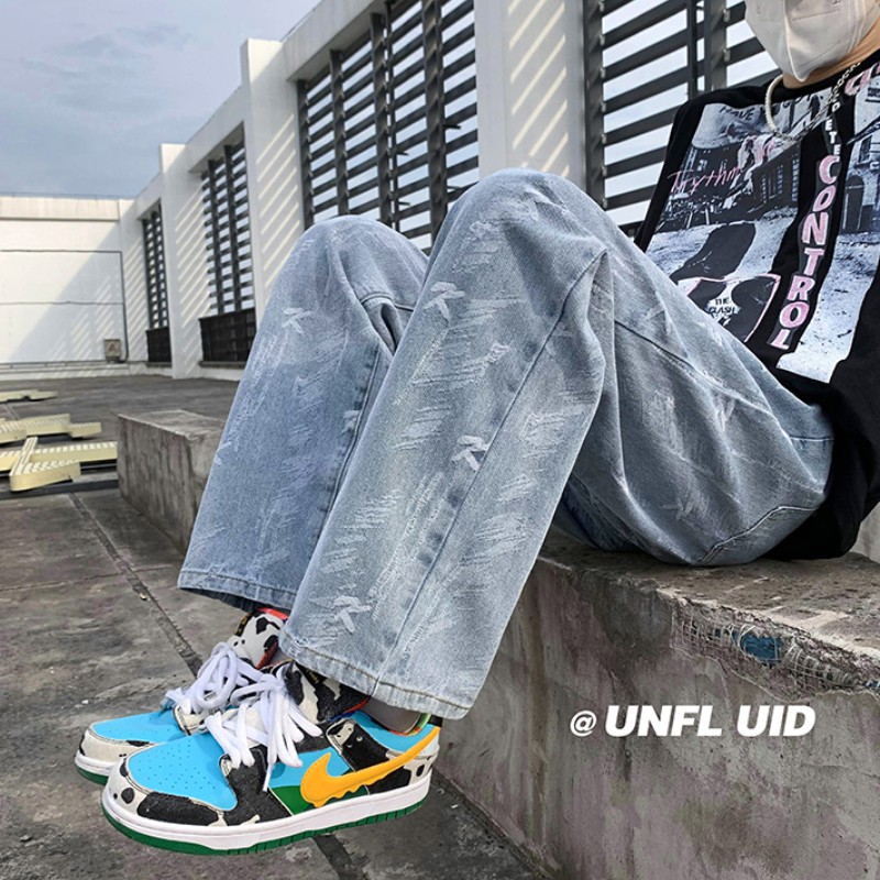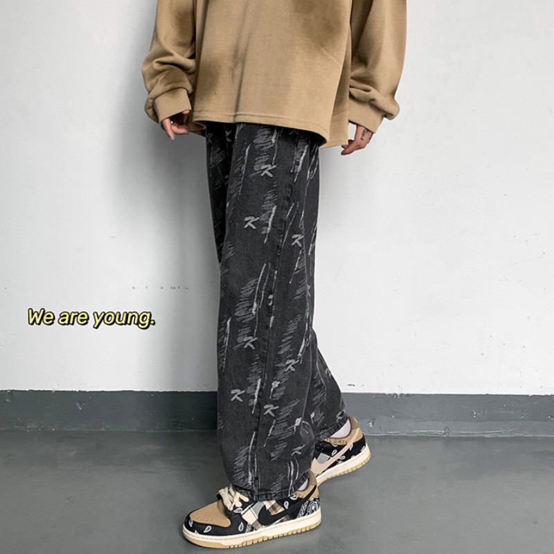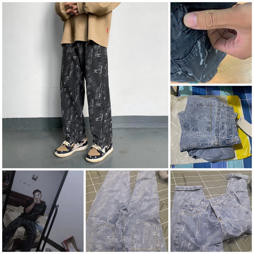 Quần Jean Dài Dáng Rộng Ống Suông In Họa Tiết Phong Cách Hiphop Mỹ Hàn Cá Tính Cho Bạn Nam