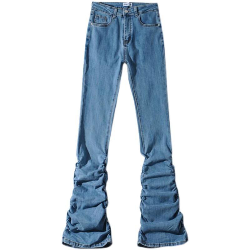 Quần jean dài xếp ly eo cao cá tính thời trang đường phố cho nữ
