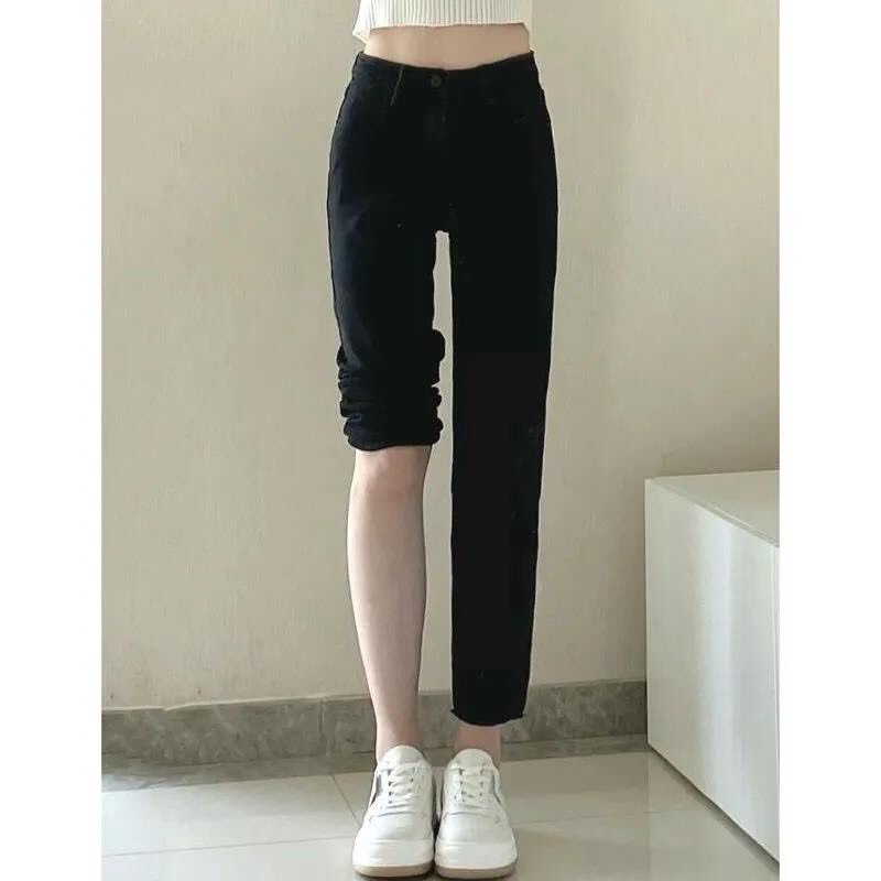 Quần Jean Nữ Đen Lưng Cao Ống Suông Ôm Sát Chân