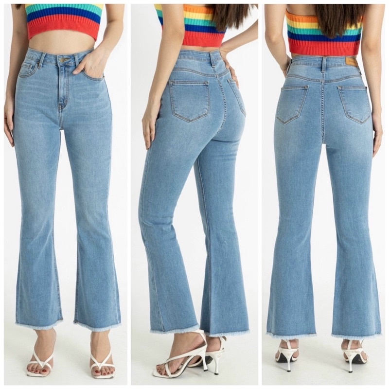 Quần jean nữ ống loe tua lai dài 91-93cm, Jean mềm mịn và co giãn mạnh