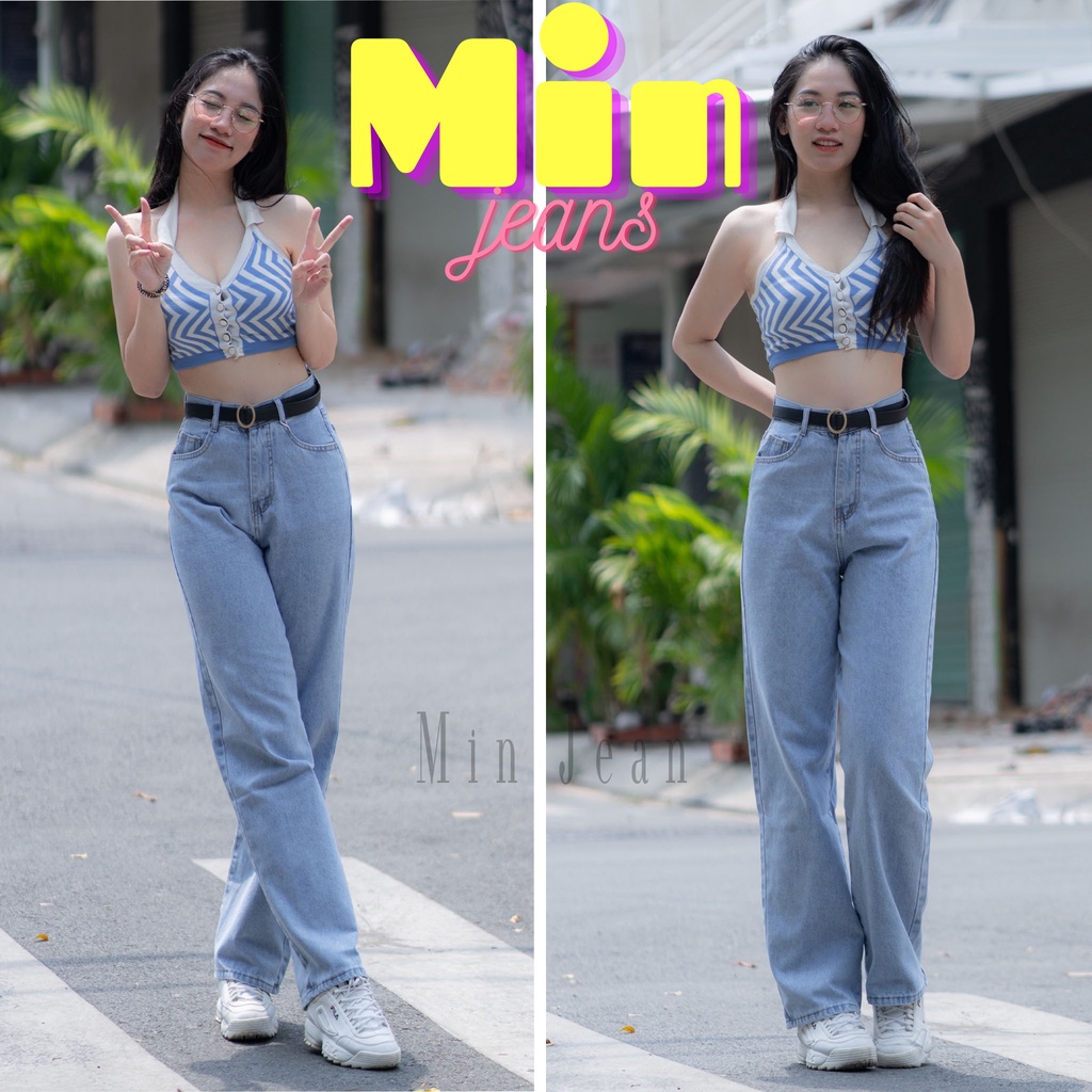 Quần Jean Nữ Ống Rộng Lưng Cao MINJEAN M080 Trơn Phom Ống Suông Dài Phú Gót Tôn Dáng, Quần Baggy Nữ Basic Hack Dáng