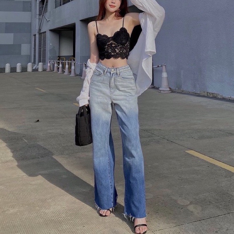 Quần jean nữ ống rộng màu xanh loang chất dày mịn , không có dãn chuẩn size 40-52kg HUYNE Denim
