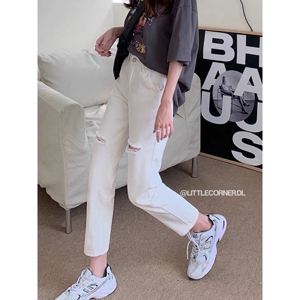 Quần jean baggy nữ ulzzang Kyubi Basic Simple cắt gấu lai tua - Quần Baggy jean Kyubi BJR51