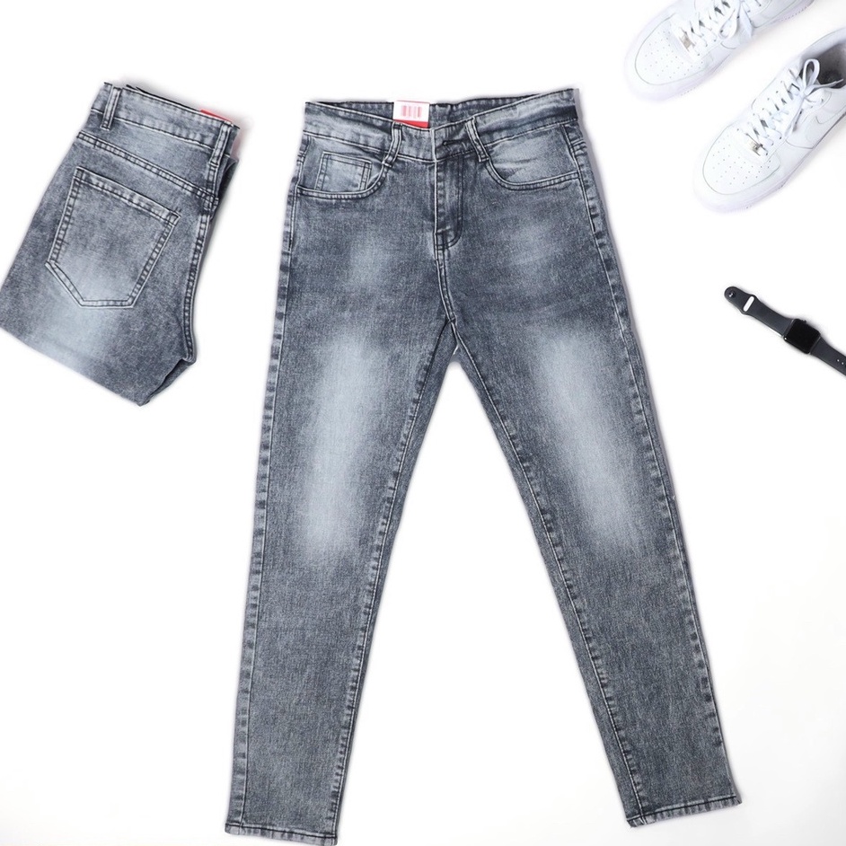 Quần jean nam đen xám cáo cấp, quần bò ống đứng co giãn thoải mái OKMAN 587588