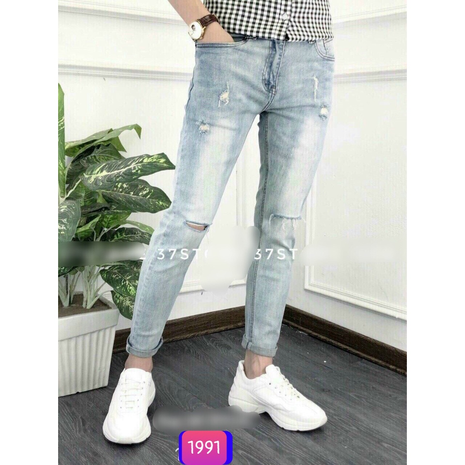 Quần Jean Nam Rách Gối Xám Bạc Ống Côn Rin Chất Bò Co Giãn Mẫu Mới Nhất M20