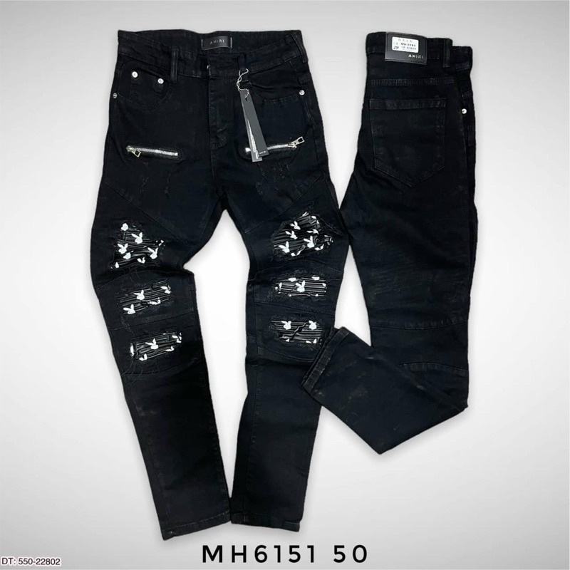 Quần Jean Nam Đính Đá Lót Da VLADAK, Quần Jean Nam VLADAK rách gối hoạ tiết đính đá thời trang