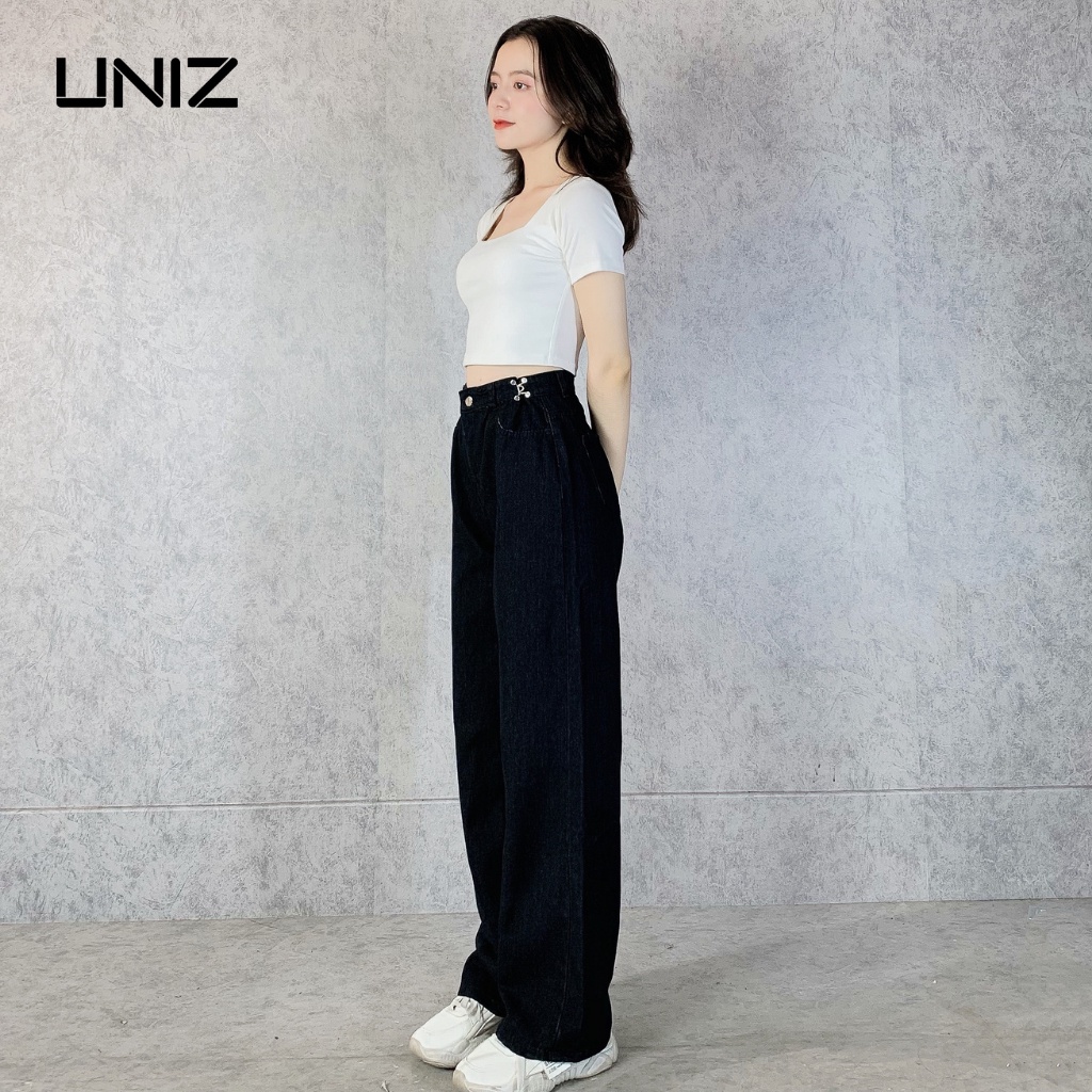 Quần Jean Suông móc cài ống rộng lưng cao UNIZ Jeanmoccai