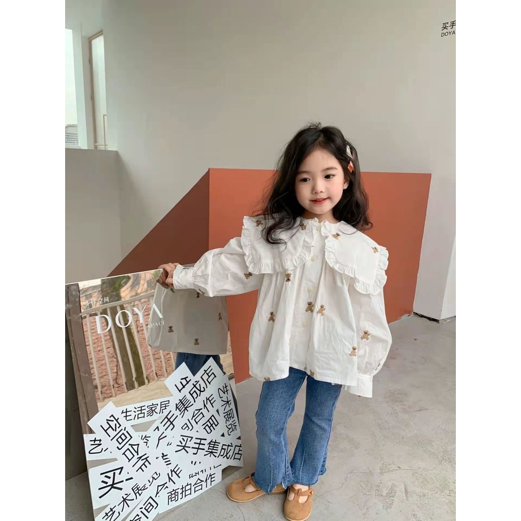 Áo Sơ Mi Dài Tay Cổ Vuông Dáng Rộng Thời Trang Mùa Xuân Thu Hàn Quốc Dành Cho Bé Gái