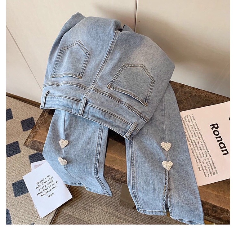 Jiashucheng Quần Jean Đen Dài Tới Mắt Cá Chân Lưng Cao Ống Loe Xẻ Tà Thời Trang Xu Hướng Cho Nữ