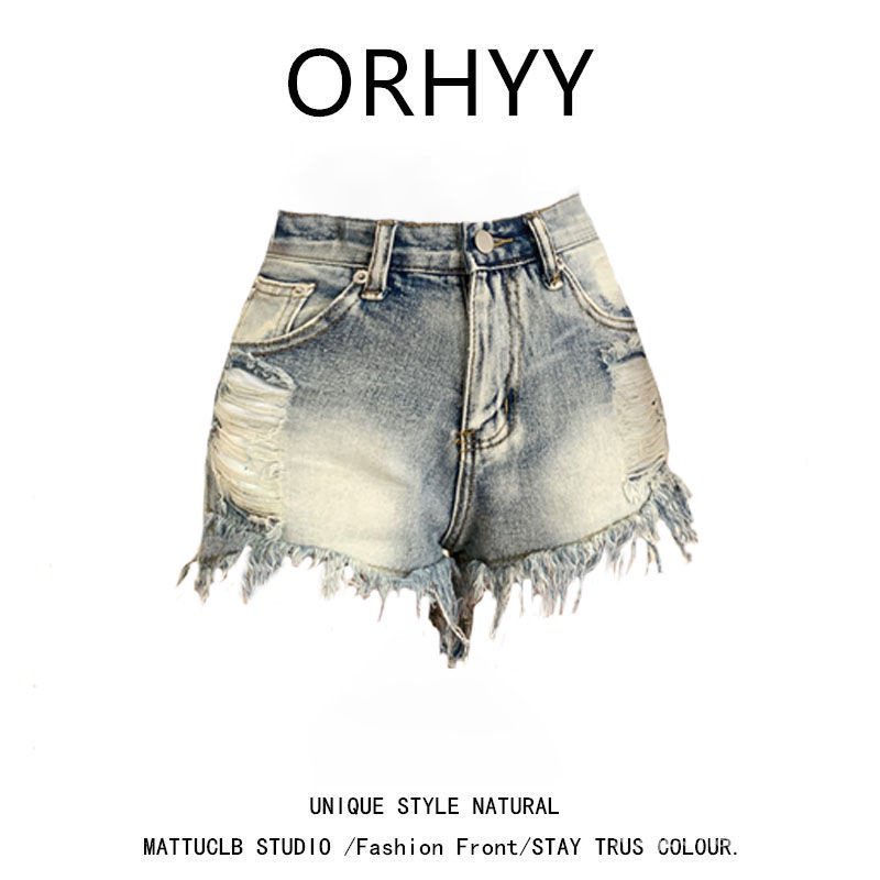 Kumikumi HUANG YOYO Quần jeans Nữ Lưng Cao Ống Rộng Rách Gối Thời Trang Hàn Quốc