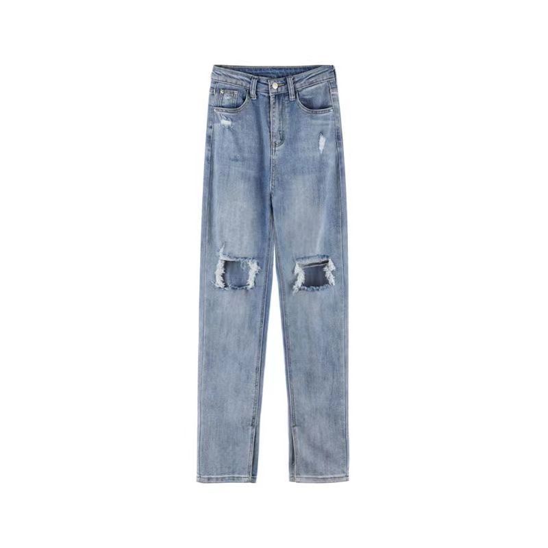 ✐Quần Jeans Nữ Lưng Cao Ống Đứng Xẻ Rách Thời Trang