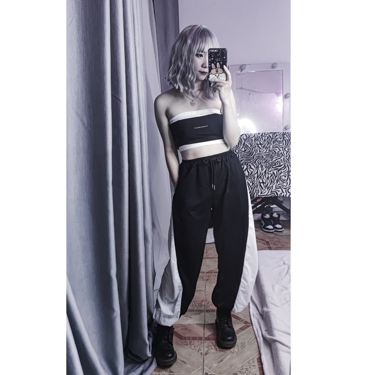 Quần jogger suông ống rộng phối đen line trắng hiphop dance, gym unisex