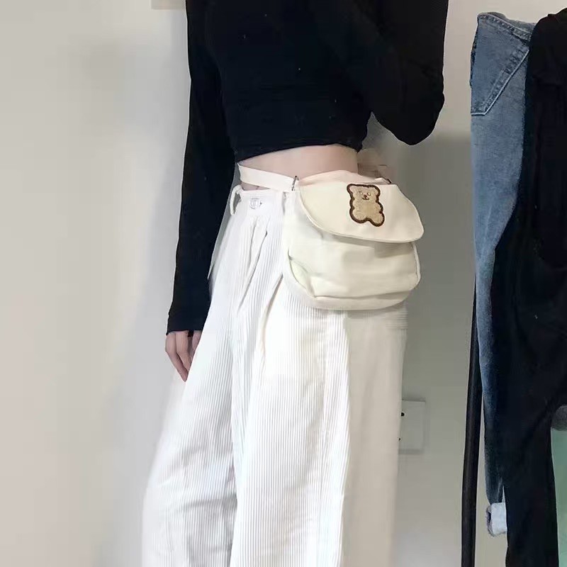 Quần kaki nhung ống rộng oversize Ulzzang unisex màu trắng dày dặn siêu chất 🤎