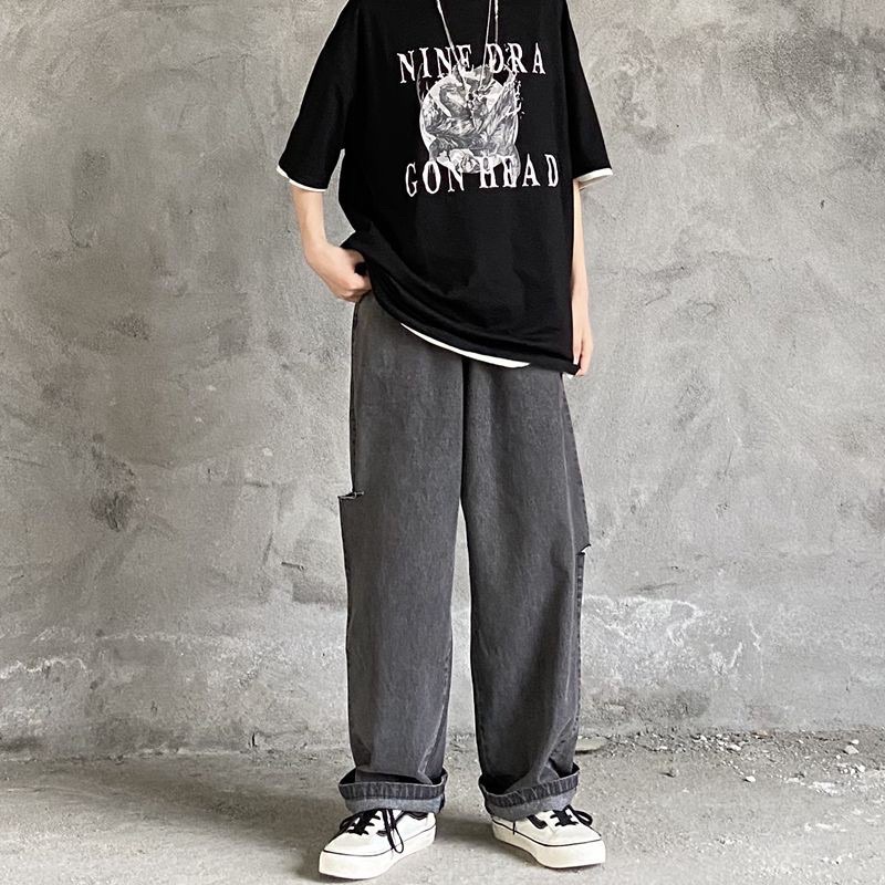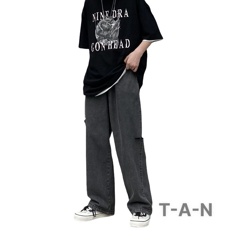 Quần KaKi Và Jeans Ống Rộng Sé Rách Thời Trang Hàn Quốc T-A-N Full size nam nữ QJKR trắng kem màu đen và xám