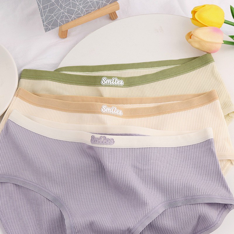 Quần Lót Nữ Cotton Tăm Kháng Khuẩn Cạp Phối Chữ Smile 687