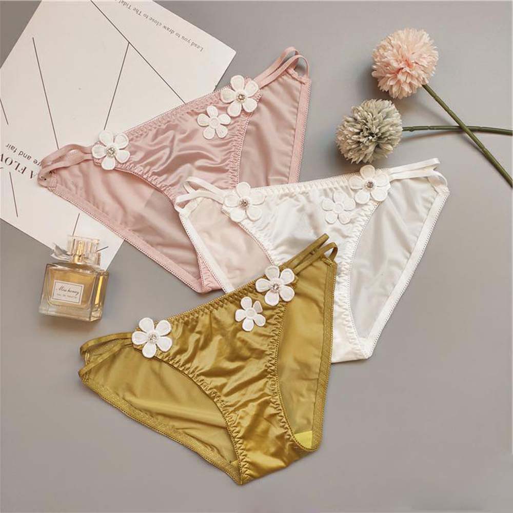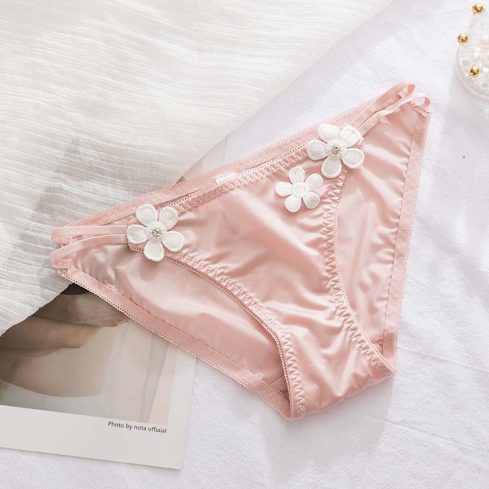 Quần Lót Satin Lưng Thấp Họa Tiết Hoa Nhiều Màu Dễ Thương Phong Cách Nhật Bản Cho Nữ