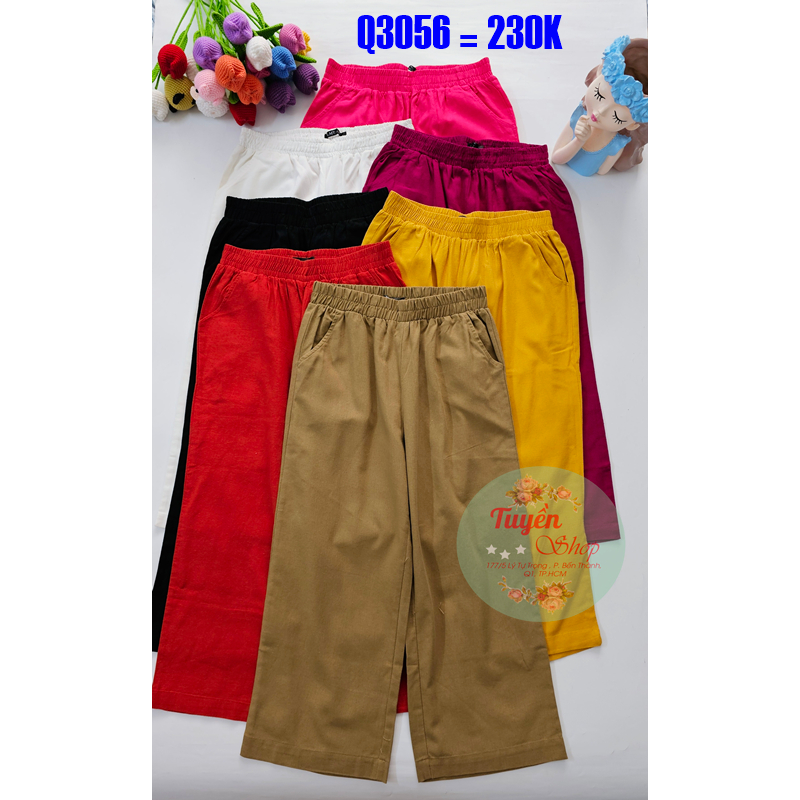 Quần lửng lưng cao cạp chun ống rộng, dáng suông,chất đũi,bigsize 82 kg QX23