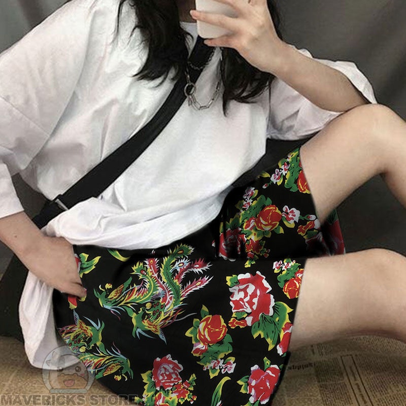 Quần ngắn ống rộng In Họa Tiết Hoa Phong Cách hip hop Dành Cho Cả Nam Và Nữ