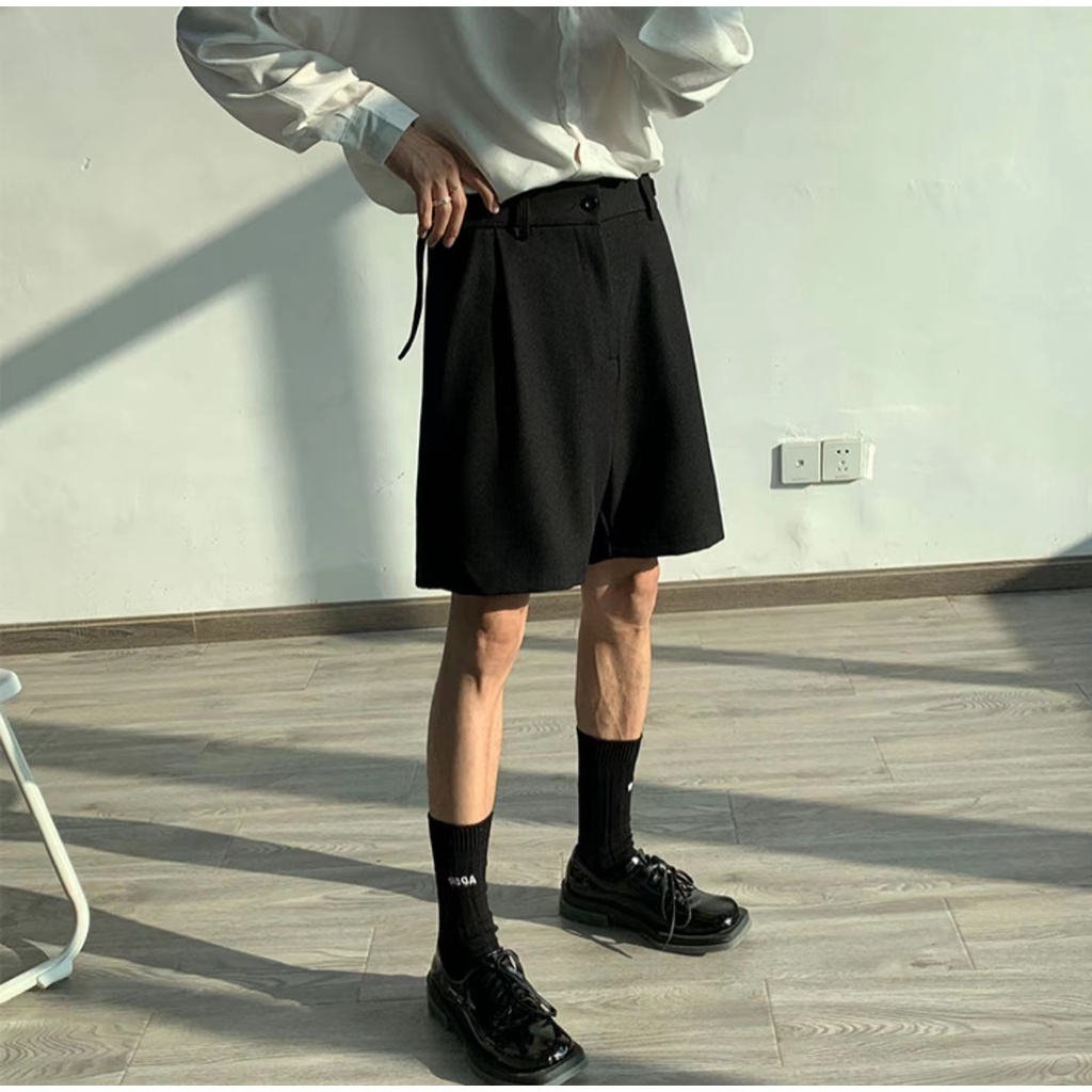 ♞AFF LIGA♞ Quần ngắn dáng rộng màu trơn thời trang mùa hè phong cách Hàn Quốc dành cho nam