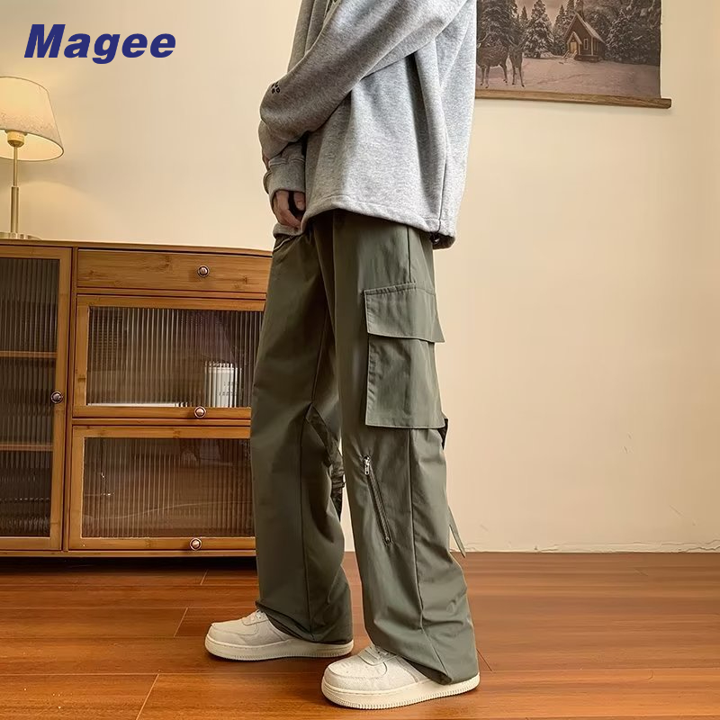 Quần Dài Ống Rộng Phối Nhiều Túi Phong Cách Retro Đường Phố Mỹ Cá Tính Cho Nam