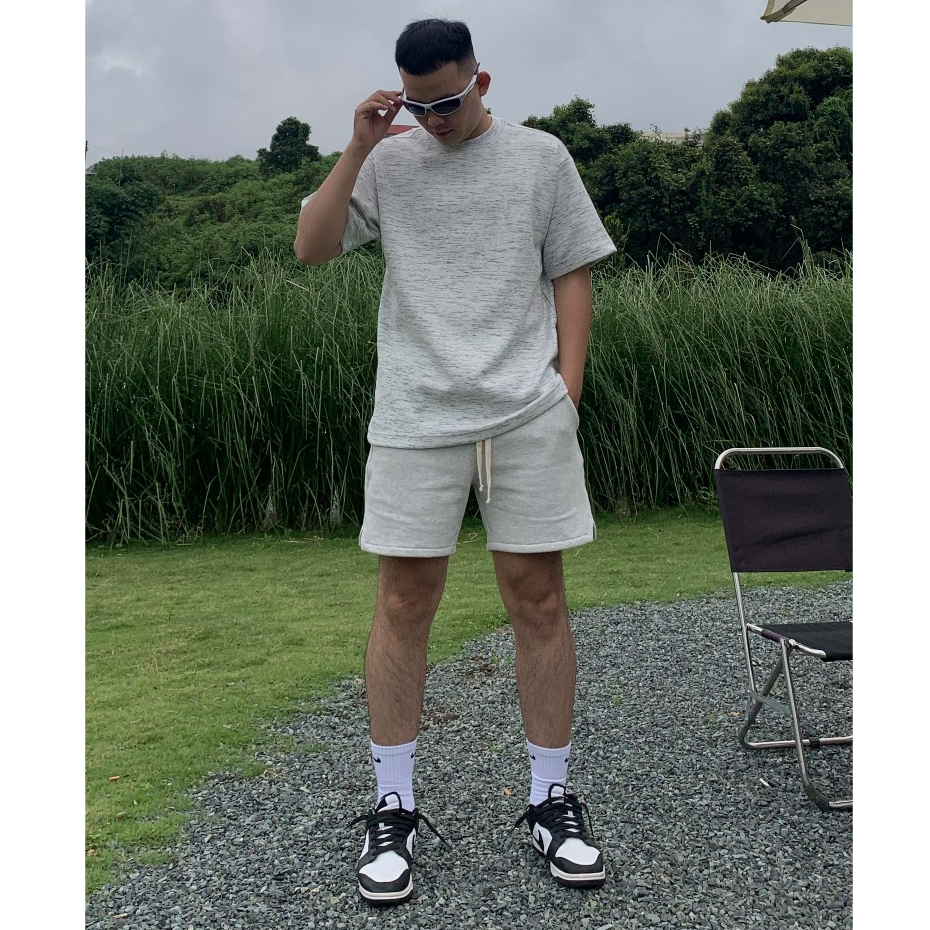 Quần short đùi nam nữ thun nỉ bông cotton trơn basic EWIGEN , thể thao , đứng form , gọn gàng thoáng mát - xám trắng