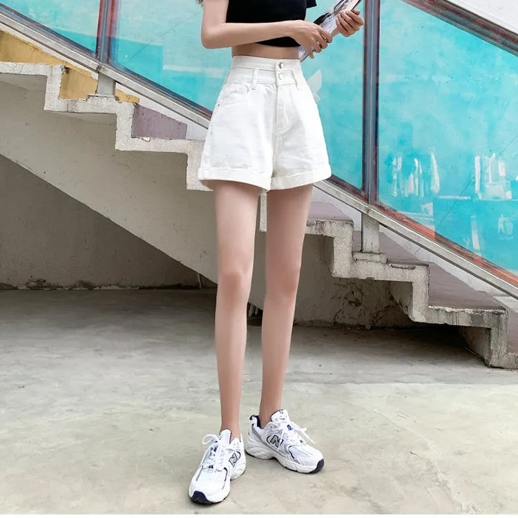 Quần short denim ống rộng lưng cao phong cách cá tính thời trang Hàn Quốc cho nữ