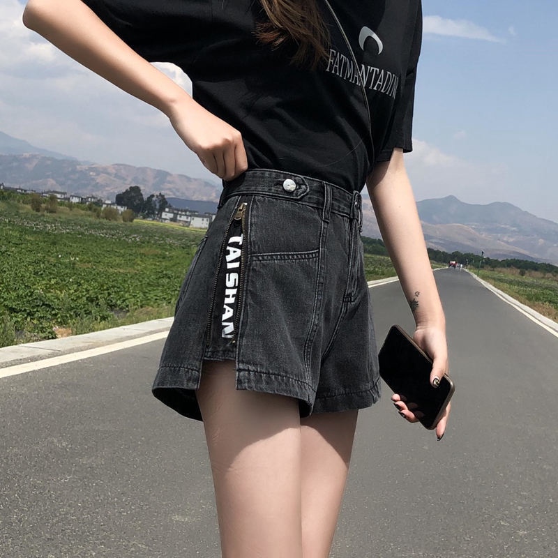 Quần Short Denim Ống Rộng Lưng Cao Thời Trang Mùa Hè Hàn Quốc Màu Đen/Xám 2022 Dành Cho Nữ