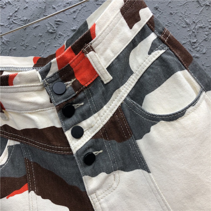 Quần Short Denim Dáng Chữ A Ống Rộng Họa Tiết Rằn Ri Màu Sắc Tương Phản Thời Trang Cho
