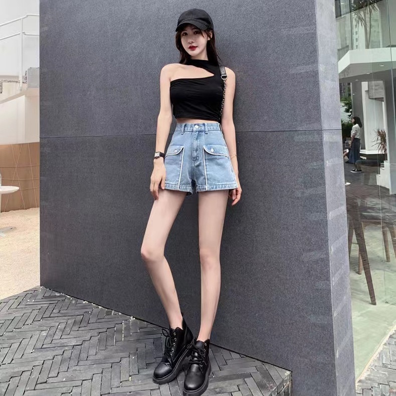 XIN LAN YA SHE Quần Short Denim Lưng Cao Ống Suông Thời Trang Mùa Hè Cho Nữ