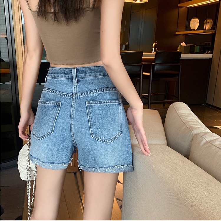 Quần Short Denim Plus Size Lưng Cao Theo Phong Cách Retro Hàn Quốc Dành Cho Nữ