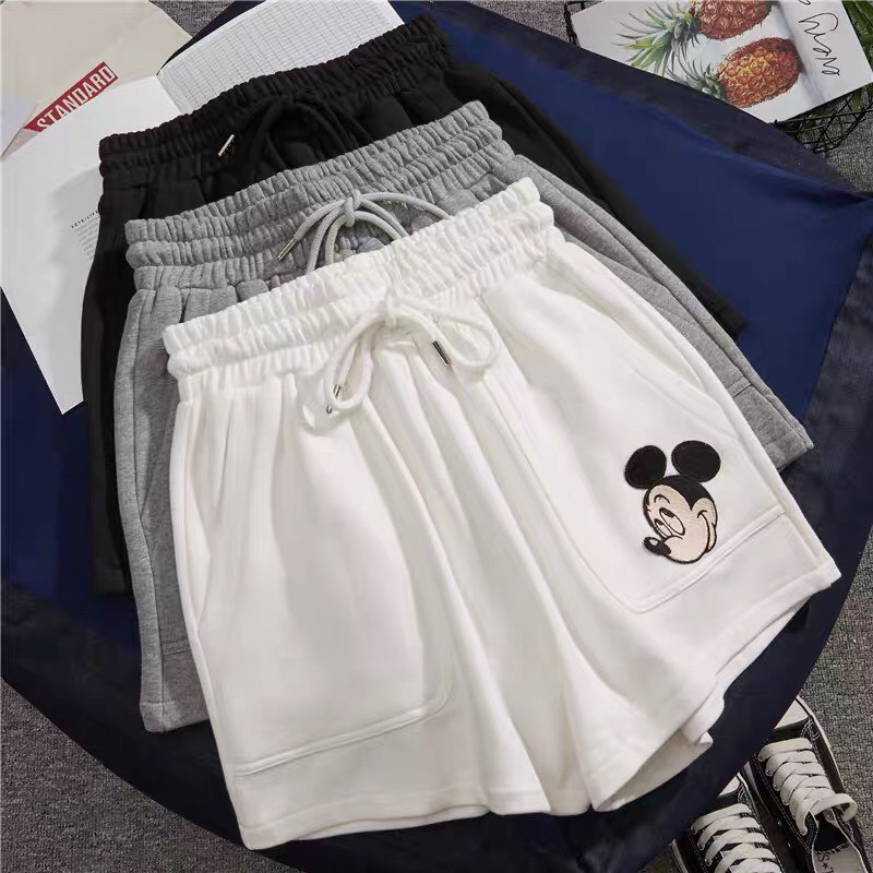 Quần sooc nữ form rộng vải da cá có dây rút, túi in hình miky, quần đùi/short nữ Taosan