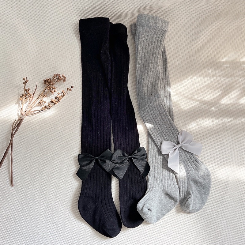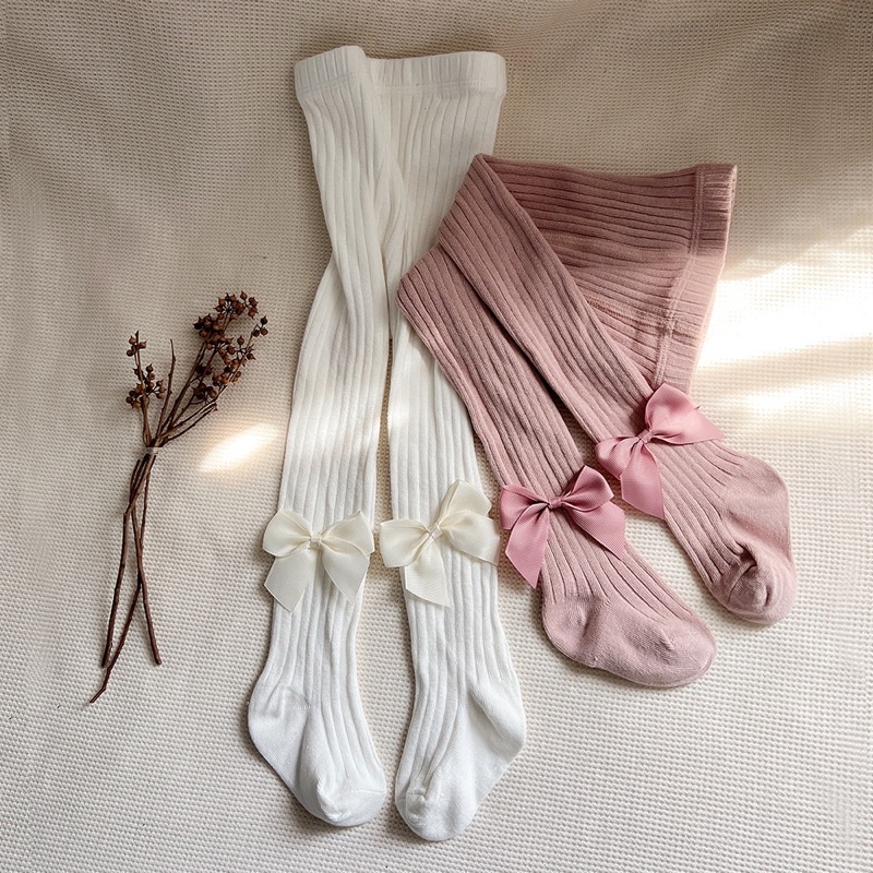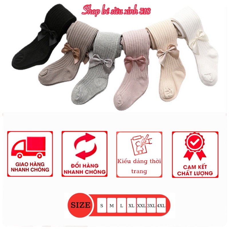 Quần tất cho bé gái 7-33kg quần len tăm gắn nơ xinh chất thun cotton dày dặn co giãn 4 chiều cho trẻ em 6 tháng -10 tuổi