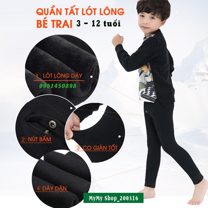 Quần Tất Giữ Nhiệt Bé Trai Lót Lông Dày Mịn Giặt máy không xù lông Quần Giữ Ấm trẻ em Từ