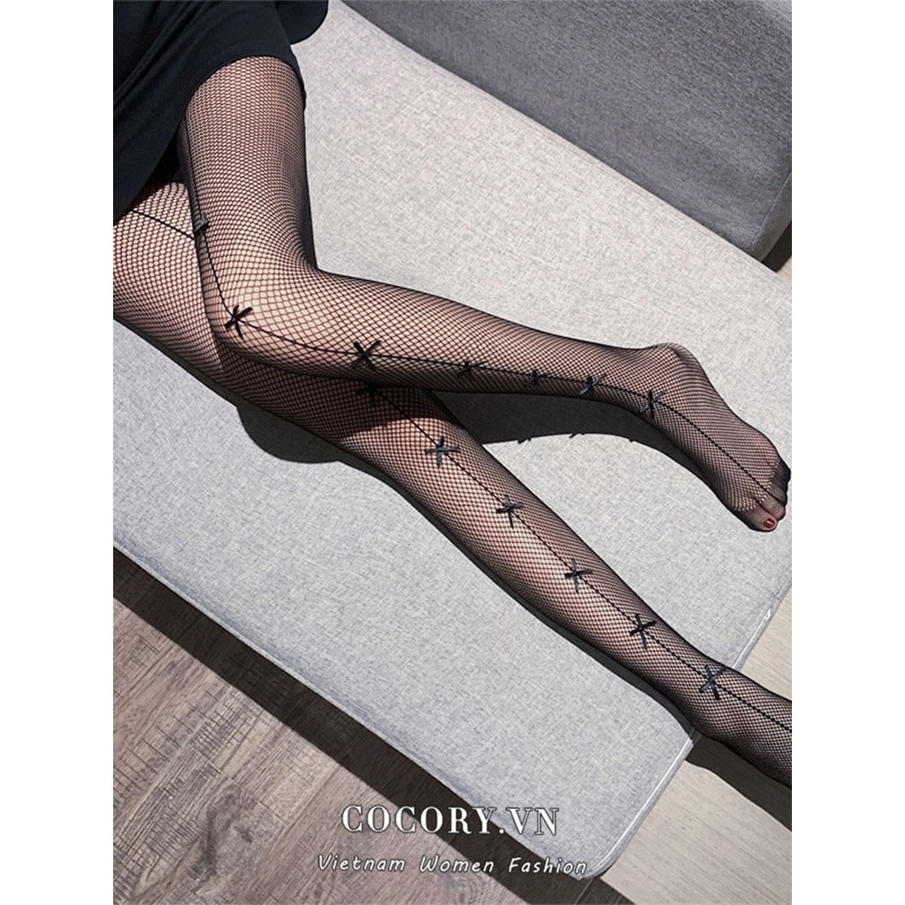 Quần Tất Vớ Mắt Lưới Họa Tiết Đính Nơ Phong Cách Lolita - Vani Store - TAT00122